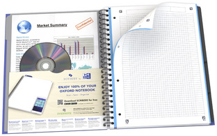 Oxford International Cahier "ACTIVEBOOK", A4+, quadrillé 160 pages, 80 g/m2, couverture en PP, intercalaire repositionnable, pochette de rangement, double spirale, perforation à 4 trous, microperforation, compatible à SCRIBZEE (ancien: 357001401 / nouveau: 100104329)