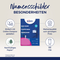 AVERY Porte-badge à pince, 90 x 60 mm transparent, en matériau sans PVC, fixation par clip, livré avec 4 feuilles (32 pièces) d'étiquettes imprimables, contenu: 25 pièces (4822)